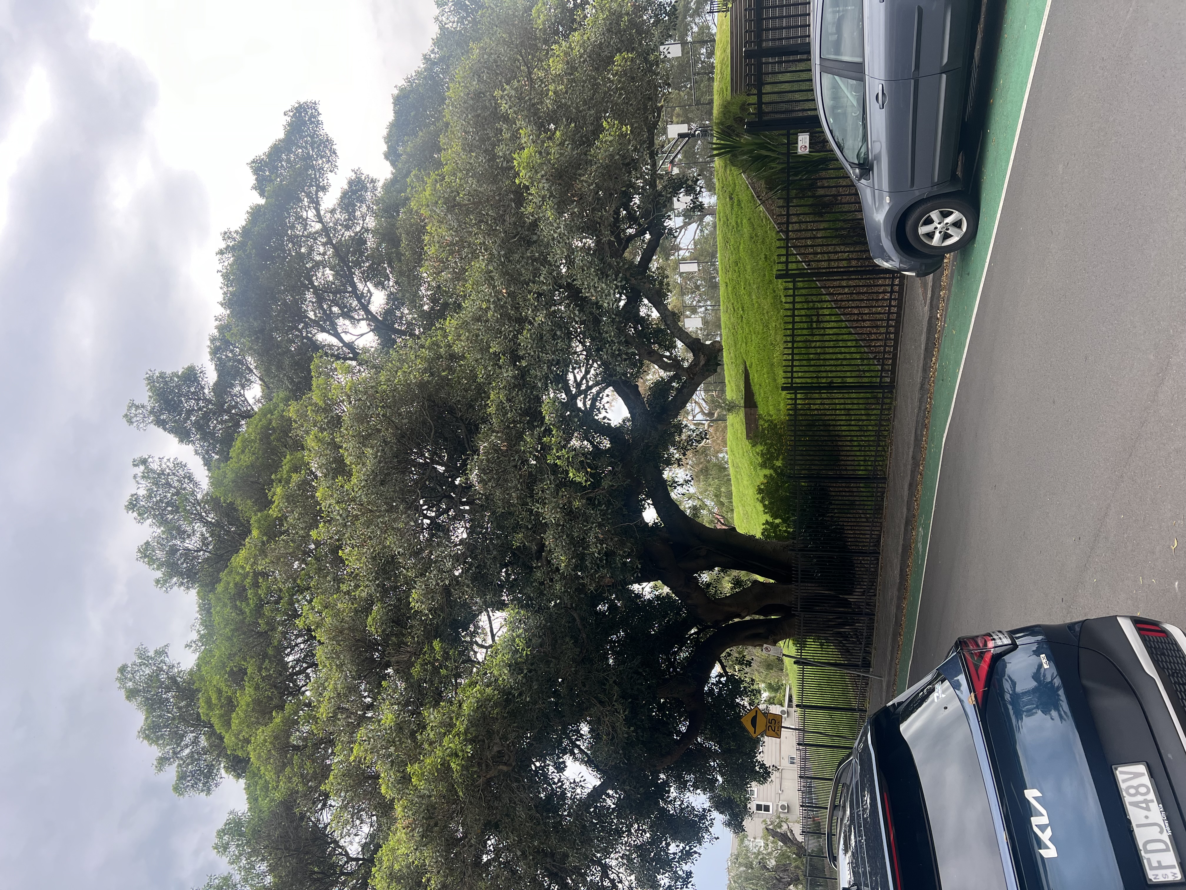 You see, the school is blessed with an abundance of land, and yet they propose to excavate within the root zone of Tree 76, this is the most magnificent tree and to demonstrate why we should care about it, it is listed on the Waverley Council’s Significant Tree Register. It is nothing short of glorious, with its majestic canopy that offers shade and beauty, protecting us from the harsh westerly sun, while providing a sanctuary for countless birds and bats. It contributes immeasurably to the local amenity. I am not a good photographer, but I have taken a few pictures to show you. But, alas, the school’s plans suggest that Tree 76 will be retained but its roots will be disturbed by excavation for a large stormwater detention structure. Worse still, cars will be permitted to park directly on its roots and below its canopy for at least a decade. This is simply unacceptable and upsets me that the school does not cherish the trees as they should. The proposed excavation will damage the root systems and disrupt the groundwater that sustains not just the trees along the school’s fence boundary, but also those in the surrounding area. With the ever-increasing heat of our streets, it is vital we nurture our trees, not strip them away. You simply cannot allow these structures and cars to be anywhere near the root zone and to interrupt the trees access to essential ground water.