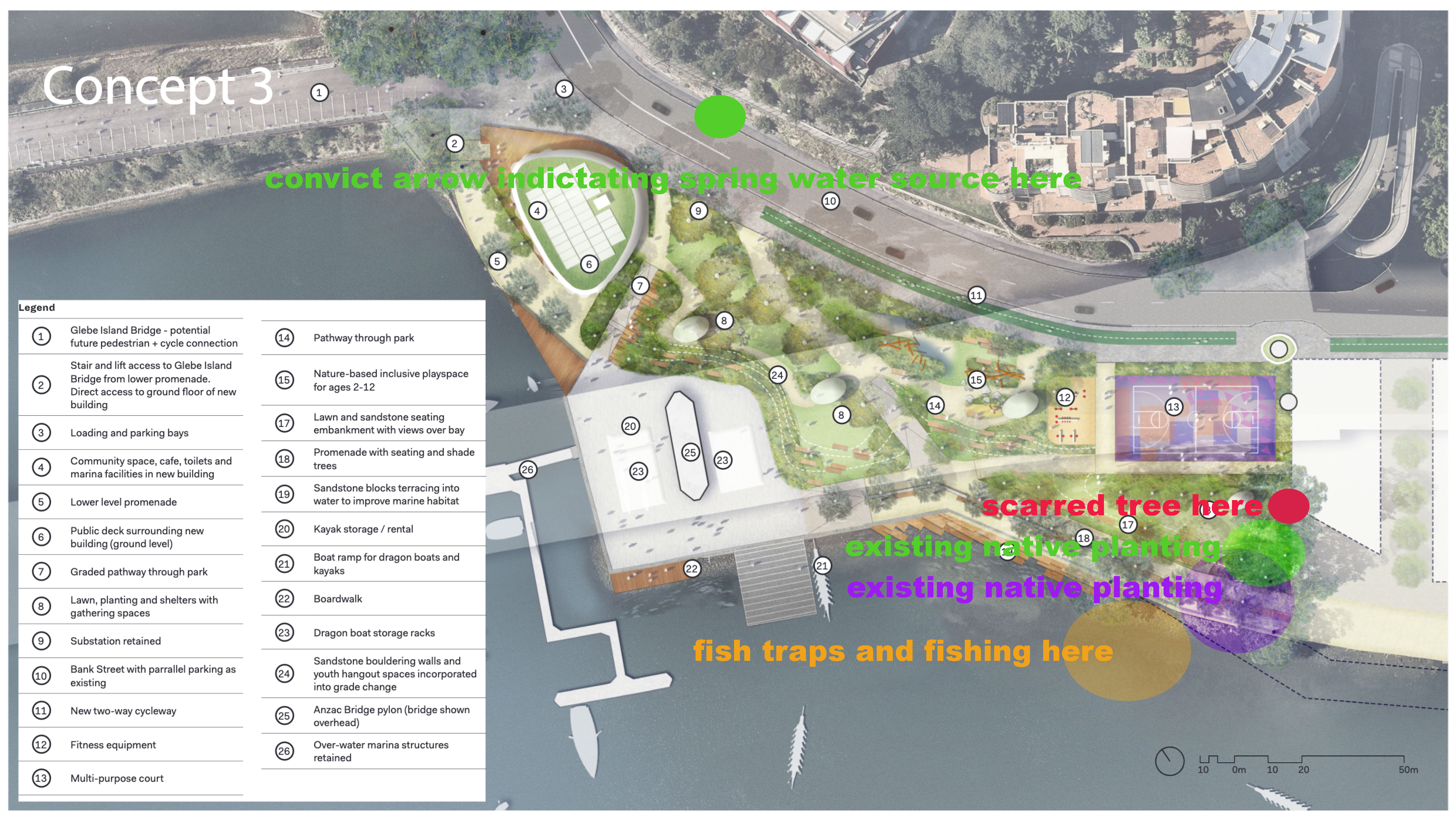 This has many support letters from Community and addresses the sites existing native plants that have been there since the 1980s, the sites heritage and significance including the sites location in proximity to a spring water source and history as a midden and location as a birthing site for Aboriginal women, information about preserving the shoreline and plants, and workshops to share teach and preserve culture