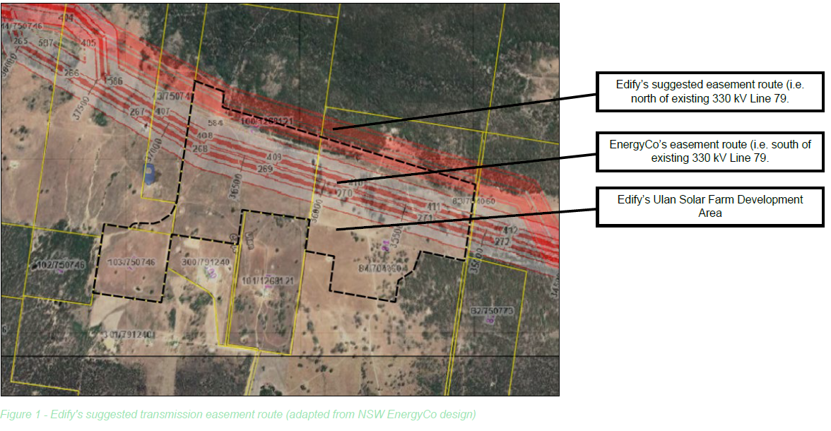 Should the easement route not be altered, Edify estimates that approximately 35% of the Ulan Solar Farm’s intended development footprint will be impacted by the easement, undermining the requisite scale and economic viability to establish the Ulan Solar Farm as intended.