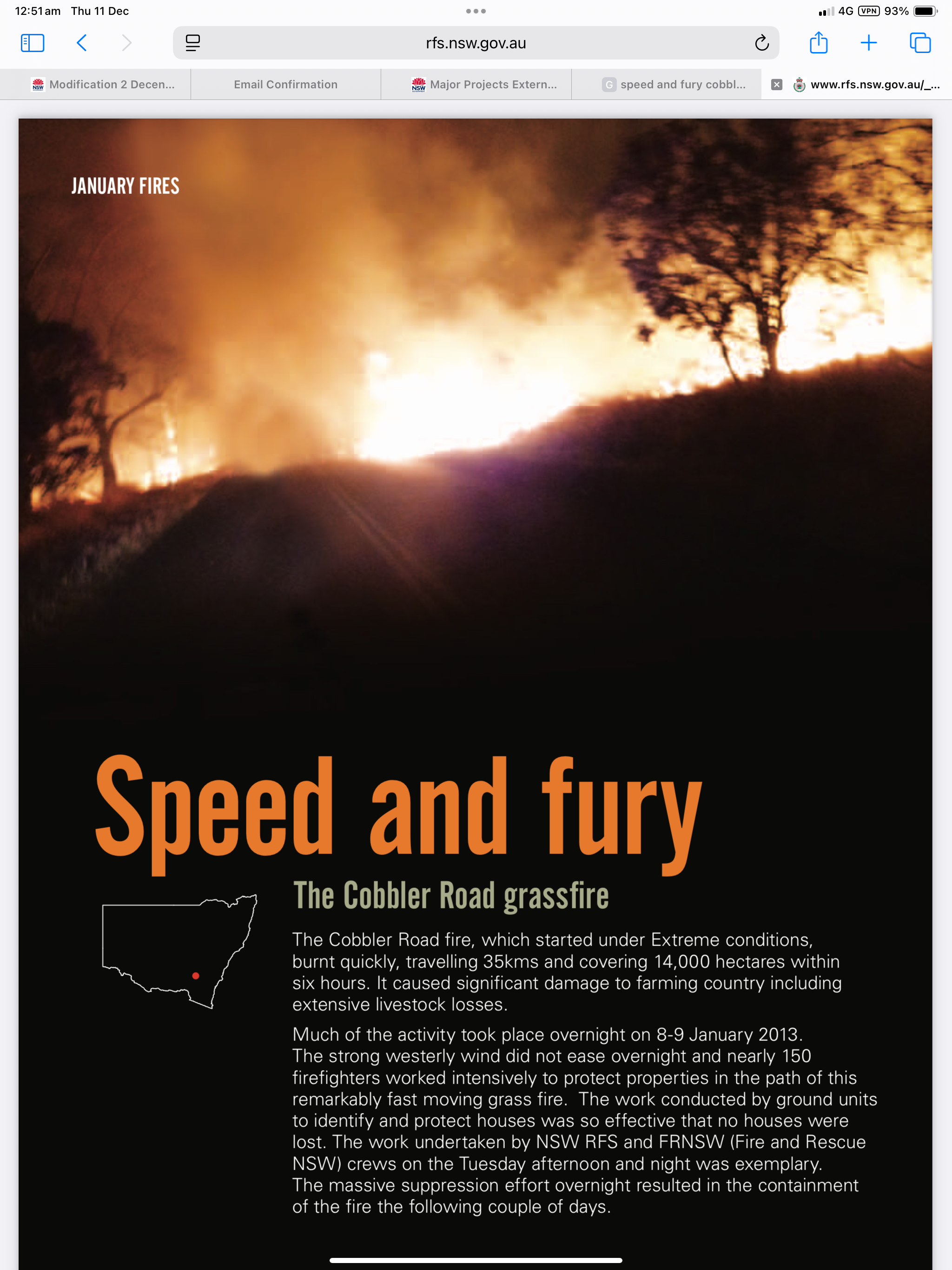 This is what I want you to think of as you contemplate the developer’s so called minor ‘modification’. We were damn lucky in 2013 that no human life was lost and fixed wing aircraft were able to be push back the threat, but add banks of highly flammable batteries on top of hundreds of turbines into the landscape and what will be our chances then?