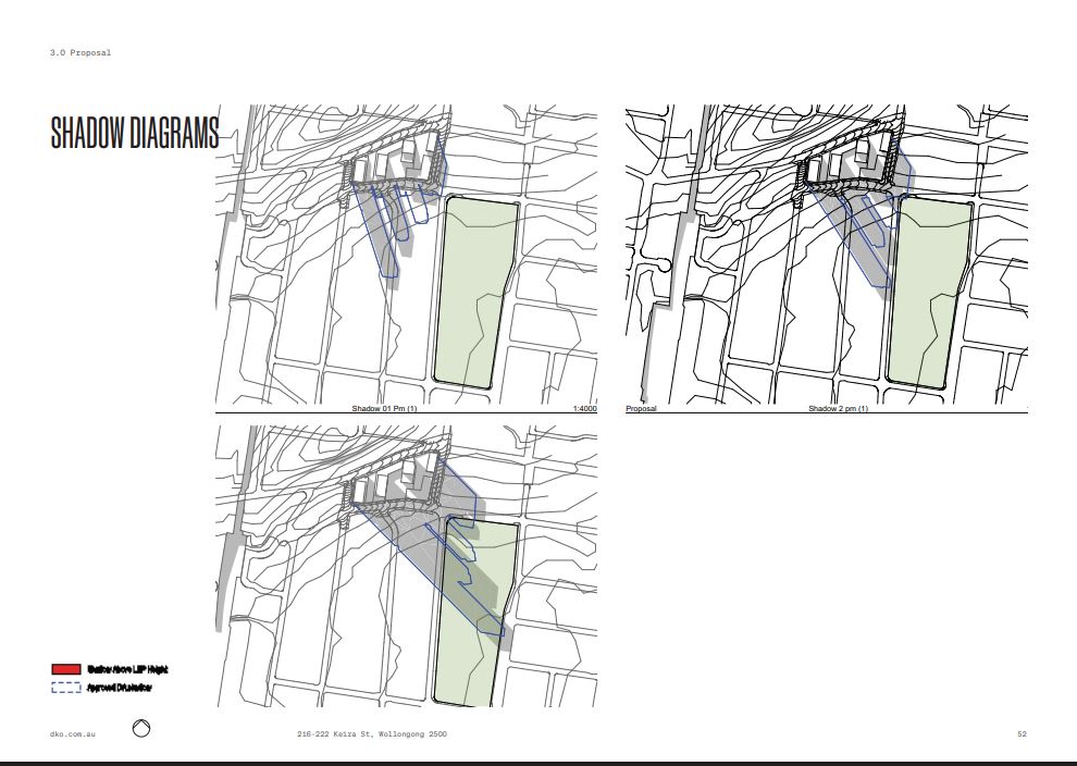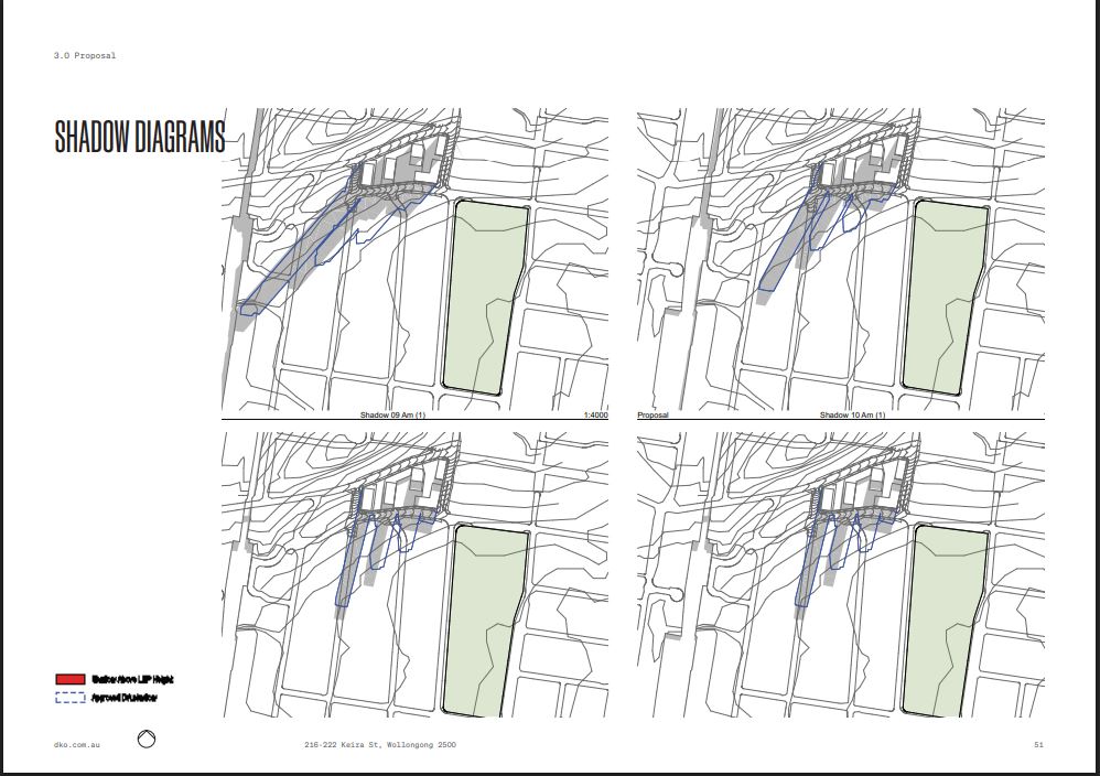 Object to: the justification that “the proposal complies with the maximum permissible FSR” and that “a maximum height of between 62.4m and 156m applies.” This approach effectively overrides the intent of the Wollongong LEP 2009, which was established to ensure appropriate building scale, solar access, and residential amenity.