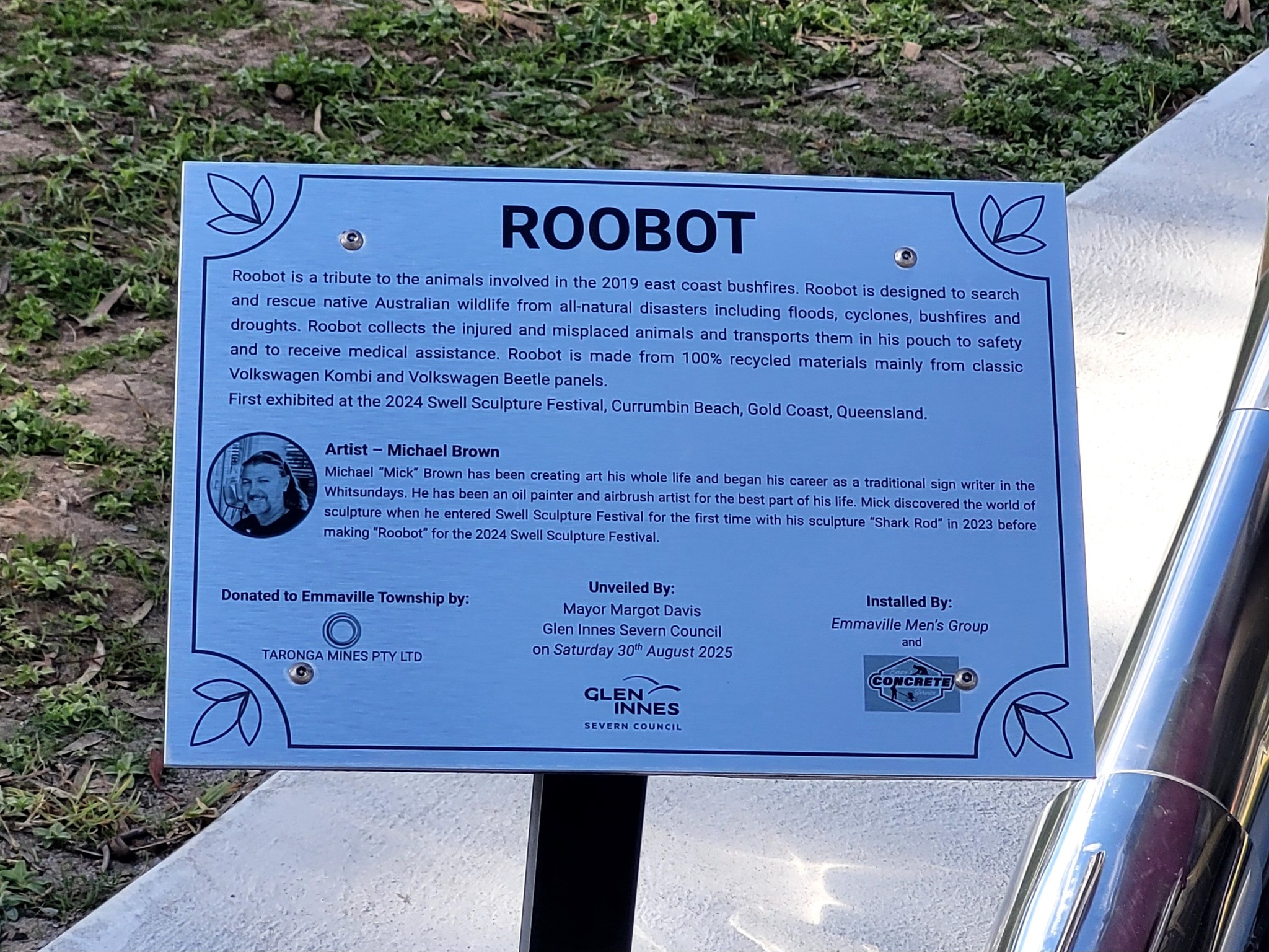 I also want to acknowledge the very real, practical support Taronga has already provided to Emmaville. Their donations and community backing have helped fund the hospital ramp, supplied a barbecue for the men’s group, and contributed to the Roobot sculpture in a substantial way: they purchased Roobot from an artist, negotiated with Glen Innes Severn Council to secure a location in the RSL Park, and arranged for its installation. This has already brought tourists into town who might otherwise have driven straight past, lifting local pride and giving visitors a reason to stop, take photos and support local businesses. They have also assisted in establishing the Emmaville Progress Association.