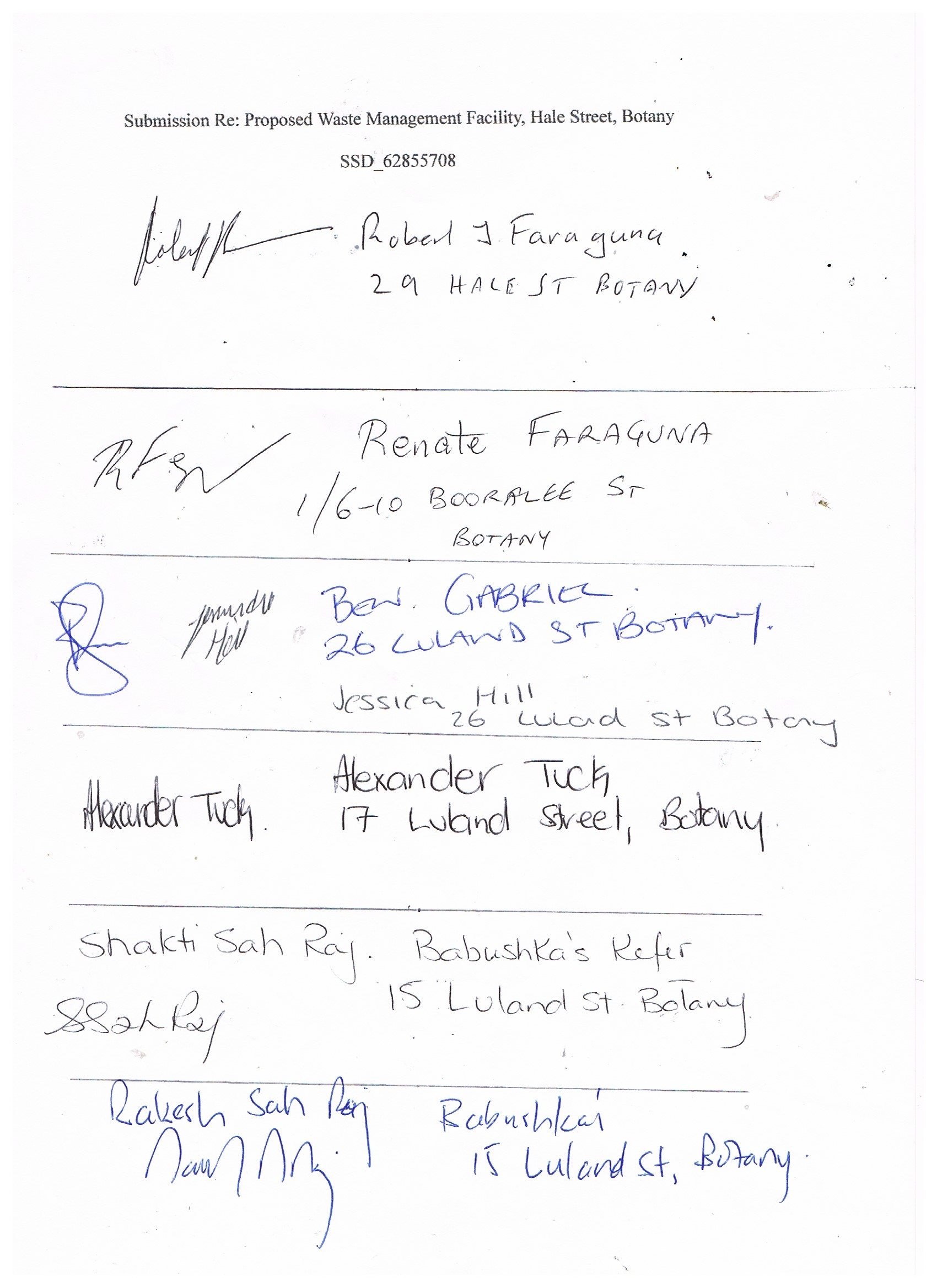 OBJECTION TO SSD-62855708 WASTE COLLECTION, TREATMENT & DISPOSAL FACILITY, 2-4 HALE ST, BOTANY.